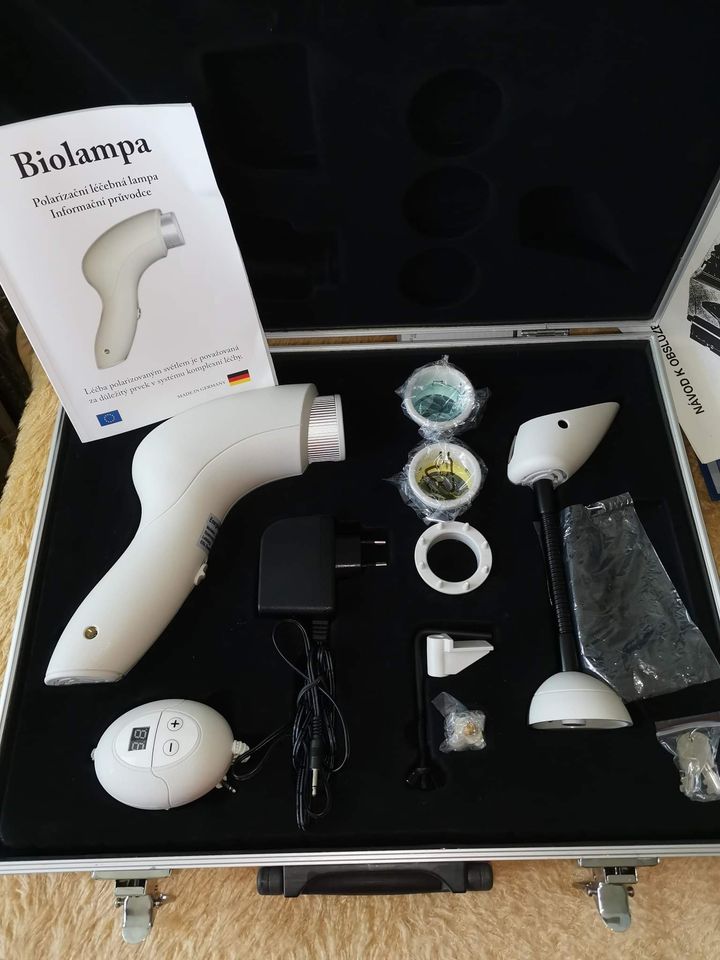 Biolampa s infračerveným světlem a čtyřmi polarizovanými světly – modrým, zeleným, žlutým a červeným. Praktická a levná sada pro domácí použití. V obalu najdete biolampu s pěti nasazovacími hlavicemi včetně infračervené, síťový adaptér a ochranné brýle.