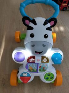 Dětské chodítko je vyrobeno ve tvaru zebry a najdete na něm různé interaktivní pestrobarevné prvky, které budou vaše batole bavit a mimo chůzi rozvíjet i jemnou motoriku. Díky zajímavému vzhledu jistě vašeho drobečka povzbudí k prvním krůčkům a s pomocí melodií a zvuků ho může chodítko naučit třeba i první slovíčka. Roste zároveň s dítětem a nabízí dva způsoby hry – nejdříve ho zabaví hraním vsedě pomocí herních tlačítek na těle zebry a později si s ním bude hrát i ve stoje. Je interaktivní a zaměstná všechny zvídavé dětské ručičky. Na těle zebry jsou zakomponovány různé prvky, které se točí, cvakají, blikají, dá se za ně tahat, různě obracet i kroutit.