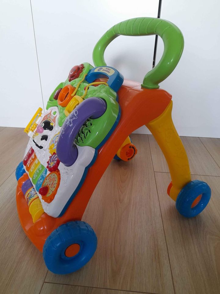 Jedná se o opravdu povedené sedací chodítko, které je pro vašeho drobečka vhodné již od 6 měsíců, s nosností do 12 kg. Prodejci ho nabízí v několika barevných variantách –  červené, modré, zelené a fialové. Můžete si tedy vybrat takový design, který se vám nejvíc líbí nebo který se vám nejlépe hodí do interiéru. Nabízí vašemu děťátku opravdu mnoho zábavy. Po celém obvodu sedadla je spousta zajímavých atrakcí, které uspokojí zvídavost každého dítěte a zároveň budou rozvíjet jeho smysly a jemnou motoriku.