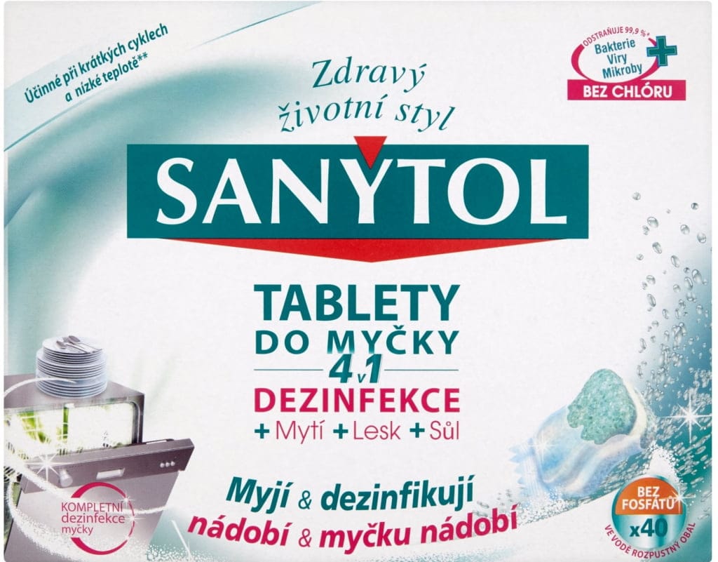 Značka Sanytol se pomalu, ale jistě rozšiřuje do nejrůznějších oblastí v domácnosti – od praní prádla, přes úklid až po mytí nádobí v myčce. Charakteristickým prvkem výrobků této značky jsou dezinfekční účinky, a jinak tomu není ani u tablet do myčky. Přívlastek v názvu 4v1 znamená, že vám při použití tableta zajistí dezinfekci nádobí i myčky, mytí, lesk a obsahuje sůl. Výrobek je tedy multifunkční a na rozdíl od jiných tablet obsahuje i dezinfekční látky, které zahubí 99,9 % mikrobů, virů a bakterií. Zároveň ničí virus chřipky typu A, E-coli, salmonelu a listerie, které vám mohou velmi znepříjemnit život.