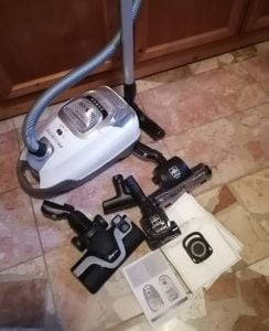 Jak už jsme se zmiňovali, tak vysavač Rowenta RO7487EA je se svými 58 dB extrémně tichý – pro srovnání je to „hluk“ jako mírný déšť, televizor při běžné hlasitosti nebo bavení mezi sebou. Většina sáčkových vysavačů se pohybuje okolo 66-80 dB. Například vysavač Rowenta RO 3927 AE je opravdu hlučný a telefon při vysávání zvonit neuslyšíte, úroveň hluku má 79 dB. Velice mile jsme byli překvapeni s celkovým vysáváním. Rukojeť vysavače je ergonomická a kovová trubka je teleskopická pro pohodlné vysávání. Především pro starší osoby to bude příjemnější. Trubice se dá výškově přizpůsobit, takže se člověk nemusí hrbit. Tuto funkci už má většina vysavačů. Akční rádius činí 11 m a samotný kabel má délku 8, 40 m. Tudíž nebudete muset tolik střídat zásuvky. Vysavač má čtyři zcela otočná kolečka na všechny strany (360°), a díky tomu bude pohyb během vysávání pohodlný. Usnadní vám manipulaci a vysavač se snadno vyhne překážkám a bude kopírovat vaši dráhu. Avšak kolečka jsou malá a občas mají problém s přejetím vlastního kabelu. Tento vysavač není žádný drobeček. Jeho hmotnost je přibližně 9,2 kg. Proto se čtyři zcela otočná kolečka či ergonomická rukojeť vyplatí. Průměr je okolo 5 kg – téměř dvojnásobná váha může ztěžovat manipulaci. Určitě tedy nebude vhodný pro starší generaci, a pokud bydlíte v patrovém domě, bude obtížnější ho „tahat“ až nahoru.