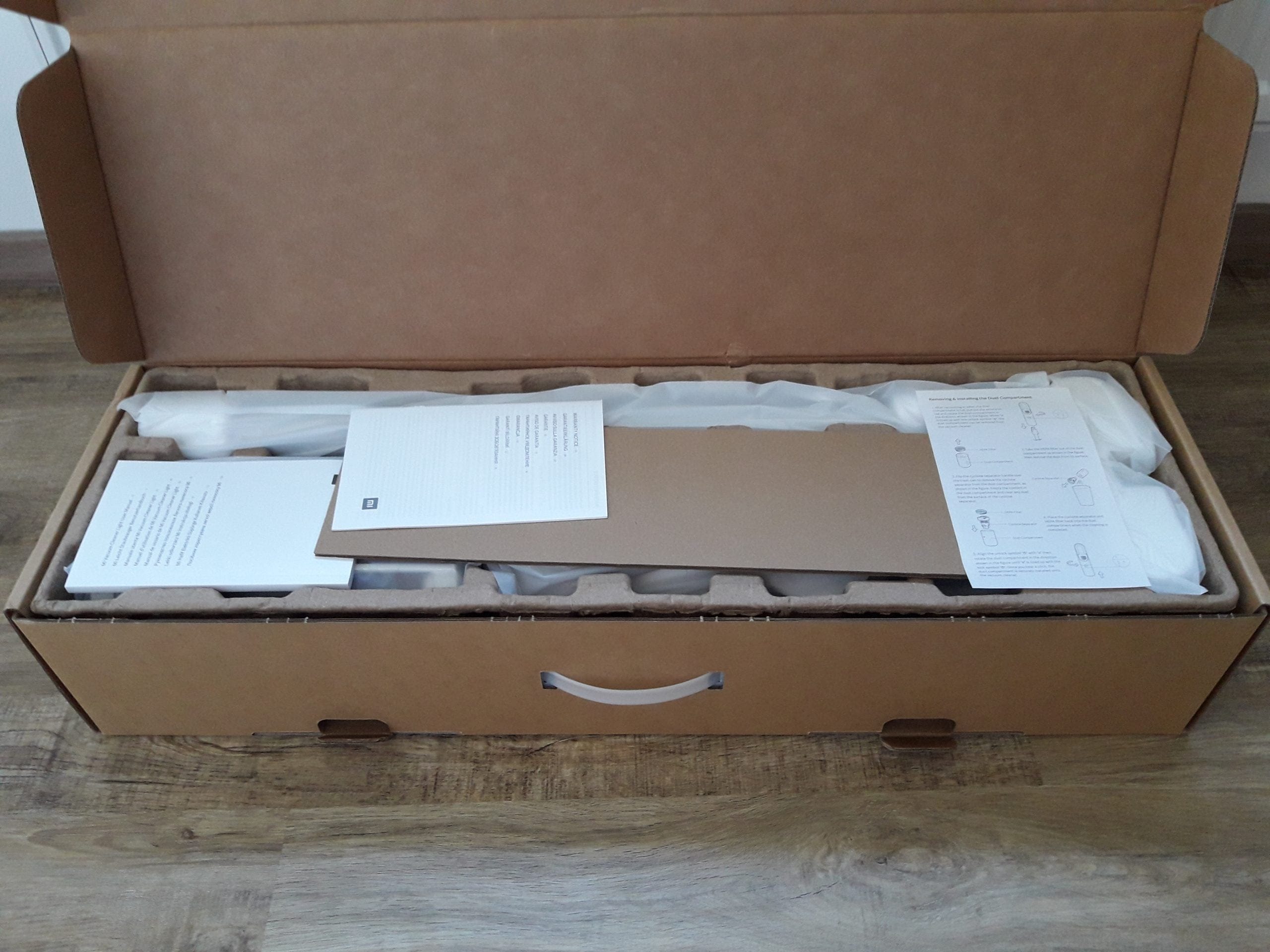 Úzká krabice skrývá celý vysavač, který má po připojení prodlužovací tyče a kartáčové hlavy délku cca 120 cm. Kromě sběrné nádoby a částí s rukojetí, jež obsahuje také motor a baterii, je součástí také podlahový motorizovaný kartáč, štěrbinová hubice a kartáčová hubice. Nechybí ani nabíječka, držák a kotvicí příslušenství.