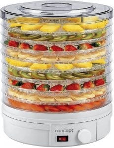 • pokud budete ovoce a zeleninu sušit jen párkrát do roka, můžete si pořídit levnější kruhovou sušičku vyrobenou z levnějších materiálů. Sice budete muset jednotlivá plata mezi sebou prohazovat, aby docházelo k rovnoměrnému sušení, ale to vás při nepravidelném sušení nebude obtěžovat.