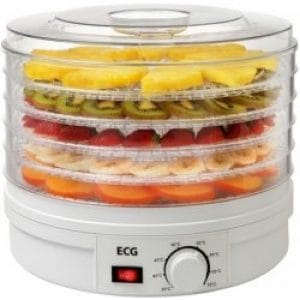 Co se pořizovací ceny týče, tento model je jen o 200 Kč levnější, než ECG SO 570, který disponuje i časovačem pro pohodlné sušení. Stačí nastavit dobu sušení, po jejím uplynutí se výrobek automaticky vypne. 200 Kč už není takový rozdíl, nemyslíte? Na druhou stranu je tento recenzovaný výrobek zhruba o 30 dB tišší než zmiňovaná vyšší řada. Hluk o síle zhruba 20 dB můžeme přirovnat k cinknutí špendlíku, takže by vás svým hučením neměl příliš obtěžovat. Kvůli menšímu příkonu 250 W trvá sušení poměrně dlouho (jablka zhruba 12 hodin).